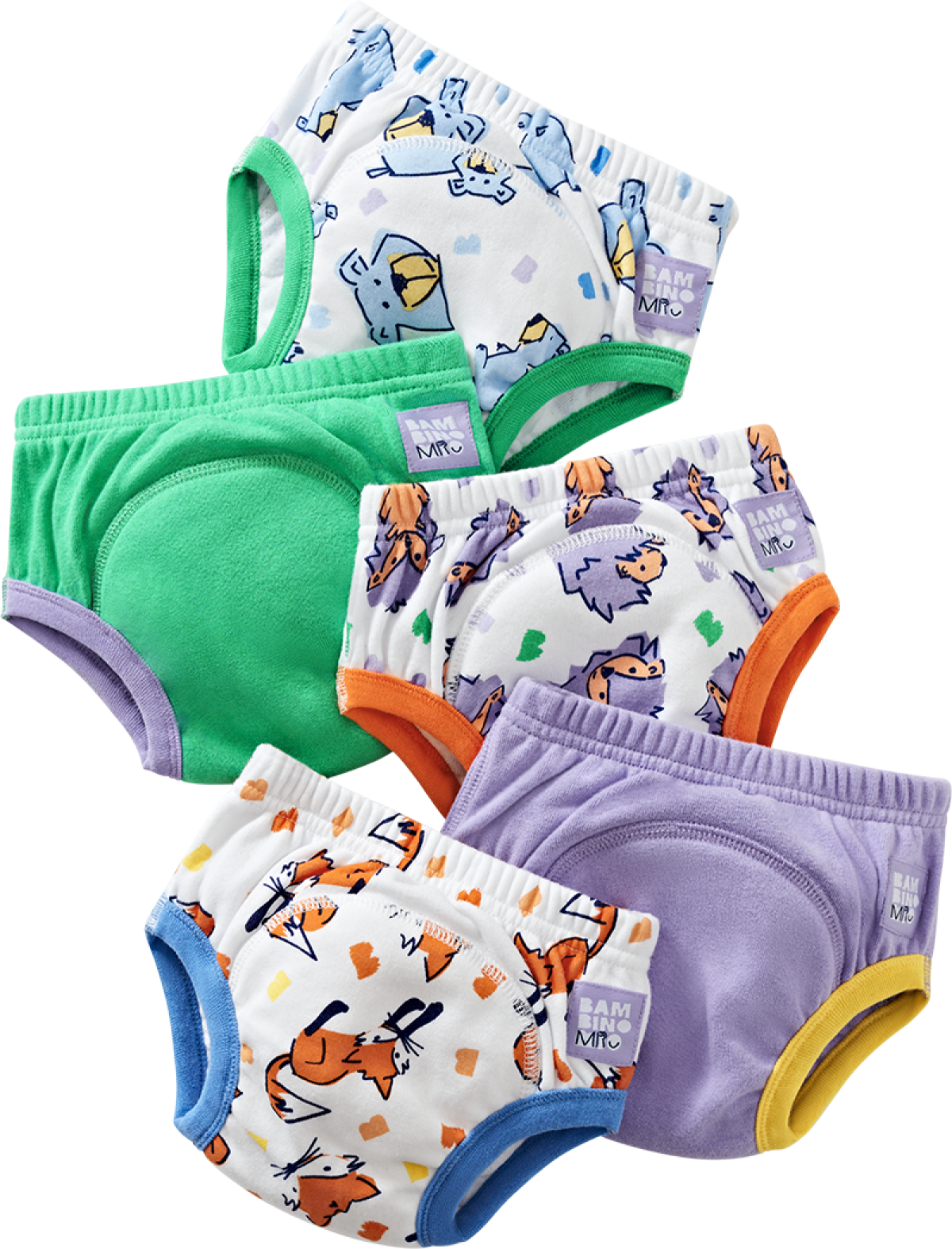 ‘Cool prints make potty training fun for kids, and they’re nicely absorbent too. Toddlers vary so much, so be sure to size up or down for the best fit and results.’