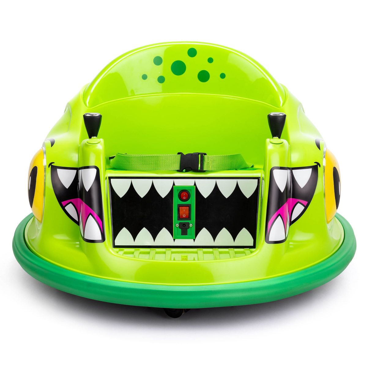Drive into the dino age with this roarsome ride-on, enhanced with colourchanging LEDs, 360° spins and dino-mite style! Safe and secure with a parental remote, adjustable seatbelt and rubber bumpers for peace of mind. Features lightup dino eyes that flash with excitement as your little one rides.
